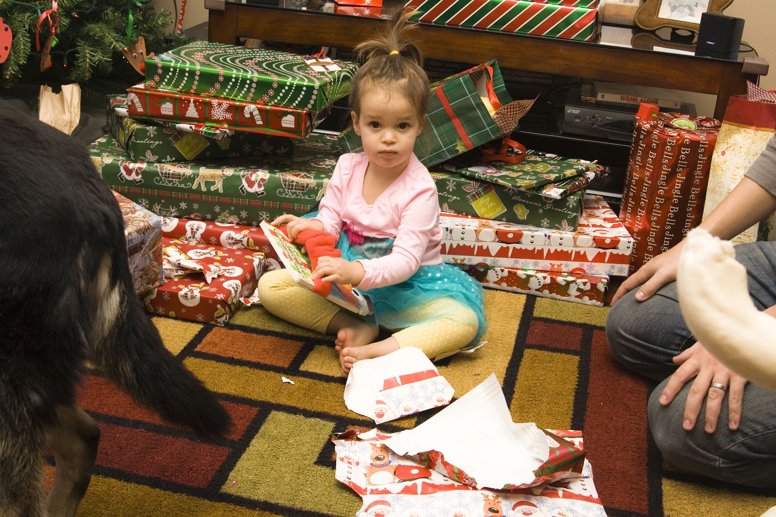 | In true awesome big sister fashion, Parker opened all of Teagan's gifts and handed them right over. |