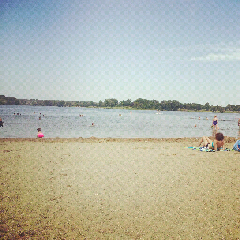 The water felt the love too. Little miss was all about it, running and splashing for hours. There must be something a bit more calming about a lake versus an ocean. See her there on the left?
